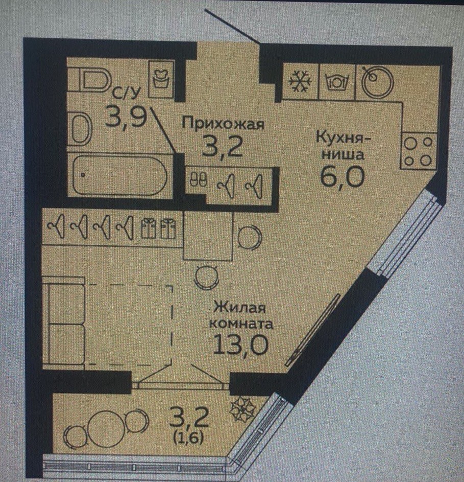 Общая площадь: 16м2